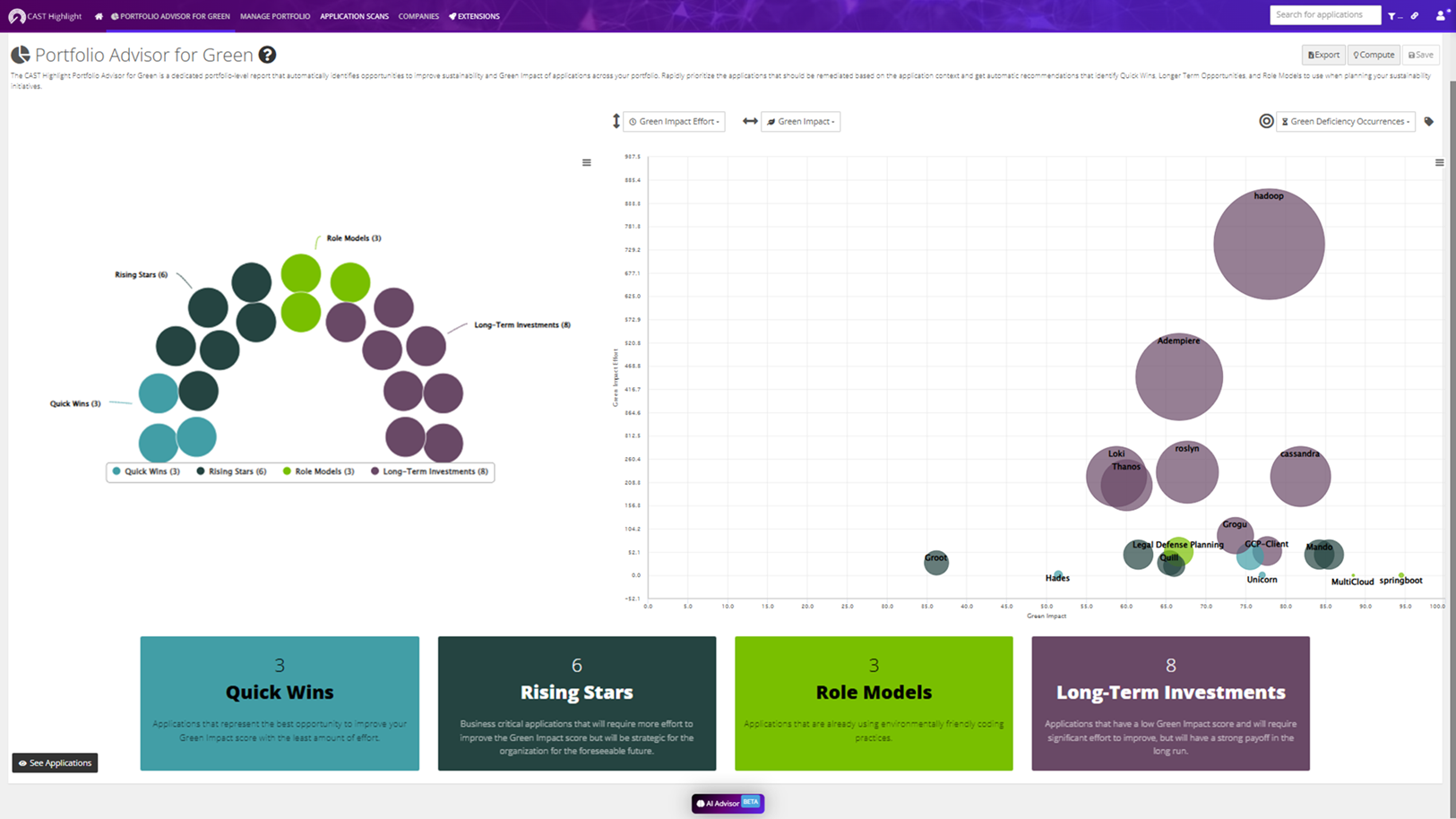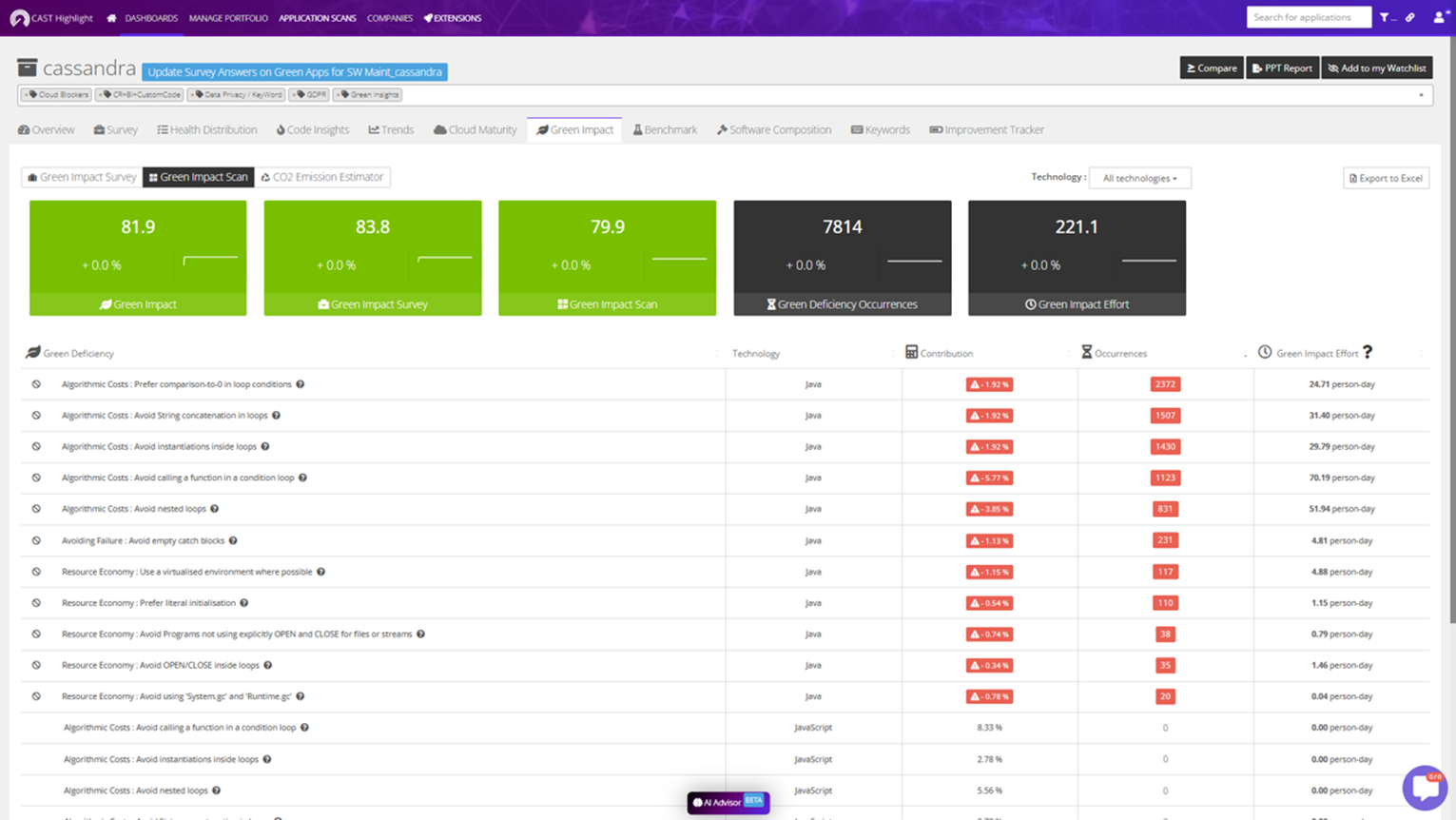 This uncertainty underscores the need to proactively integrate sustainability into AI-driven software development. Software mapping and intelligence technologies, such as CAST Highlight, can help. By analyzing application source code for inefficient patterns and offering remediation advice, CAST Highlight enables organizations to identify and correct green deficiencies, aligning software development with sustainability goals.