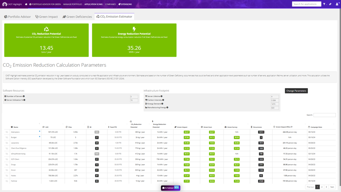 CAST Highlight's use of the Software Carbon Intensity (SCI) formula, established by the Green Software Foundation, allows organizations to quantify the environmental benefits of optimizing their software applications. This metric offers a tangible measure of the potential reduction in CO2 emissions, providing a clear incentive for adopting greener coding practices.