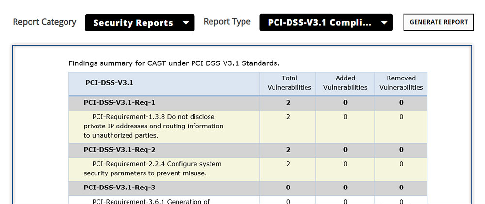 CAST automatically scans the source code of a software and accurately detects the violations to industry specific security standards such as the PCI-DSS. The comprehensive reports enable reporting and monitoring the adherence to data safety standards.
