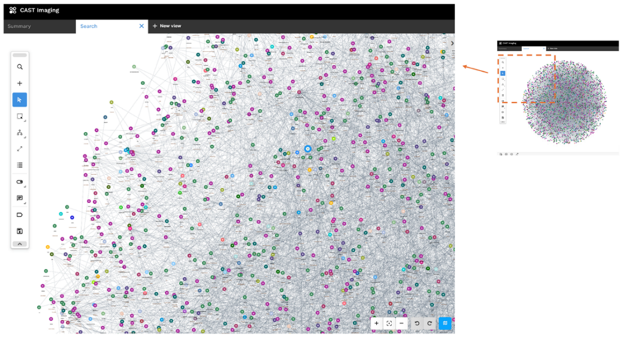 Figure 4. Map of the inner workings of a mid-size application with 300,000 LoC. Generated by CAST Imaging.