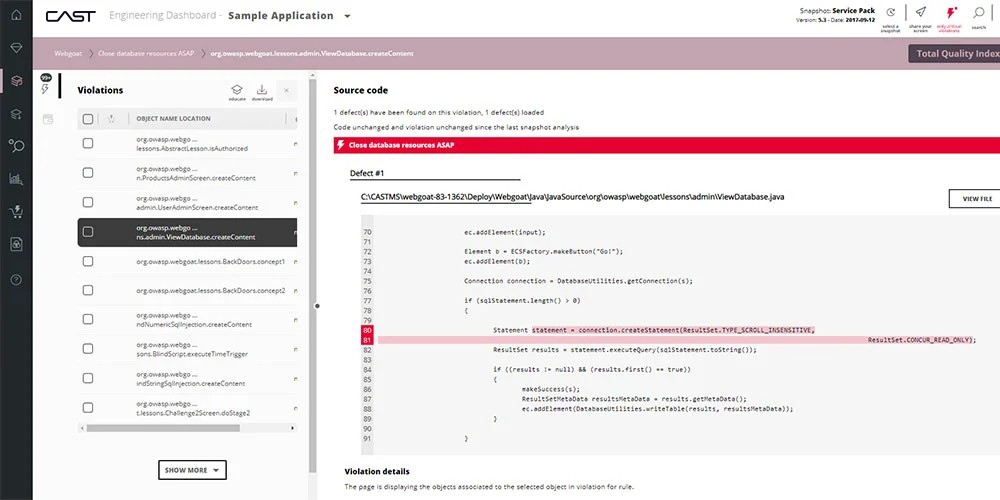 CAST automatically scans the source code of a software and accurately detects the violations to industry specific security standards such as the PCI-DSS. The comprehensive reports enable reporting and monitoring the adherence to data safety standards.